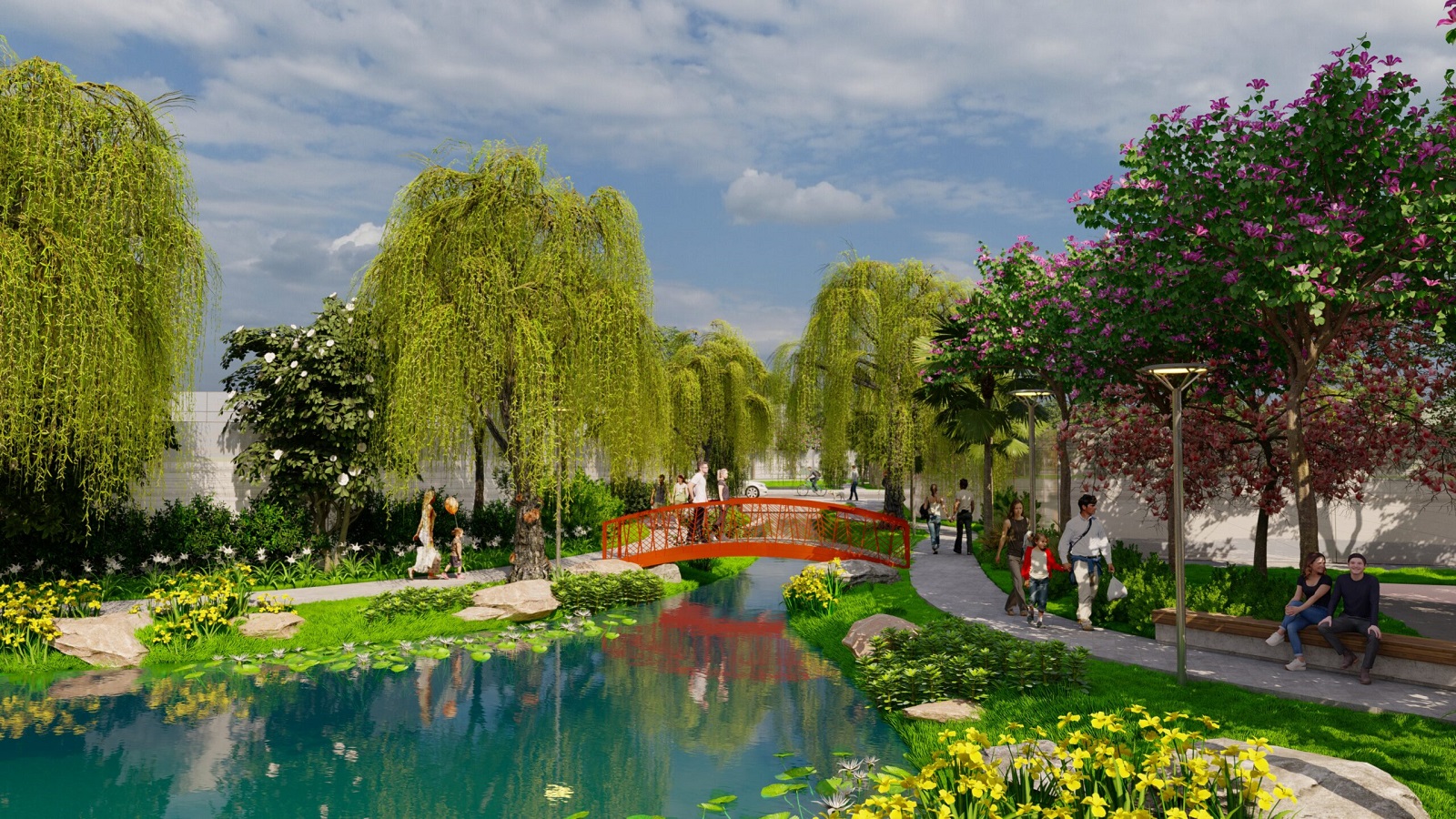 - Khu thể thao ngoài trời: Đường dạo bộ, sân tập thể dục cho cư dân mọi lứa tuổi